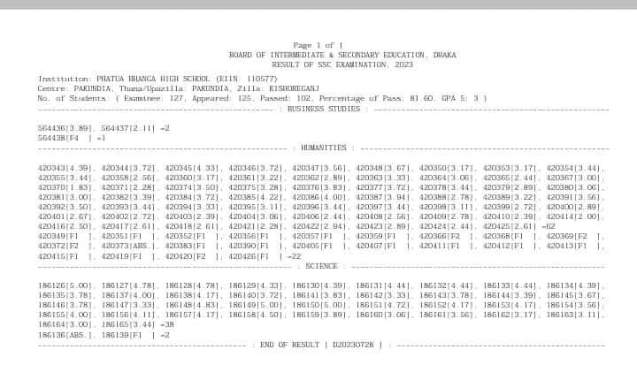 ২৫-০৮-২০২৩ এসএসসি ফলাফল- ২০২৩ ইং পাটুয়াভাঙ্গা উচ্চ বিদ্যালয় GPA 5 - ৩ জন। পাশের হার ৮১.৬০% মোট পরীক্ষার্থী ছিলো : ১২৭ জন।